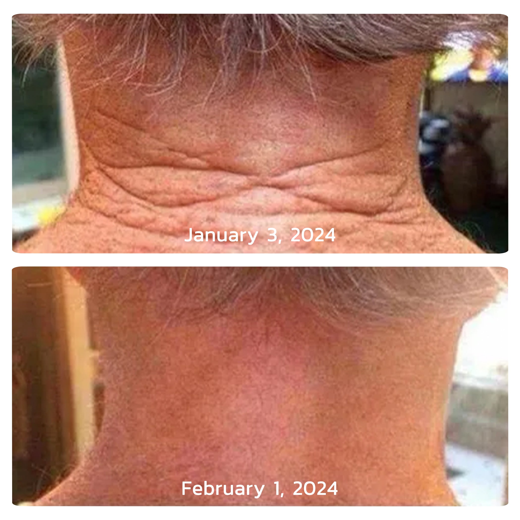I’ve been using it for over a month now. It applies beautifully, and my skin doesn’t feel greasy. I can feel an improvement in my skin's elasticity, but I was waiting for my husband or kids to notice (since it’s my biggest insecurity and something I thought they’d pick up on). About a week later, my son finally noticed. He said, “Hey, your wrinkles are gone.” We were both surprised by how well it works.